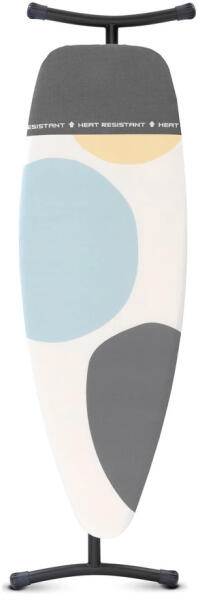 A Brabantia D méretű vasalódeszkája egy extra nagy és stabil megoldás, amelynek különlegessége a huzatba integrált, hőálló parkoló zóna és az ülve vasaláshoz is ideális aszimmetrikus váz. 135x45 cm-es vasalófelülettel rendelkezik, magassága pedig extra széles tartományban, 61 és 102 cm között állítható. A gyerekzár és a csúszásmentes talpak gondoskodnak a biztonságról. A "Spring Bubbles" mintás, 100% pamut huzat alatt vastag habréteg biztosítja a sima felületet.