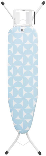 A Brabantia A méretű vasalódeszkája kompakt és stabil megoldás a mindennapi vasaláshoz. 110x30 cm-es vasalófelülettel, 69 és 96 cm között állítható magassággal, valamint egy kinyitható vasalótámasszal rendelkezik. A gyerekzár és a csúszásmentes talpak gondoskodnak a biztonságról. A "Fresh Breeze" mintás, 100% pamut huzat alatt vastag habréteg biztosítja a sima felületet.