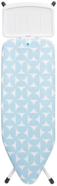 A Brabantia C méretű vasalódeszkája kifejezetten gőzállomásokhoz lett tervezve. Extra széles, 124x45 cm-es vasalófelülettel, 75 és 98 cm között állítható magassággal, valamint egy nagy, 10 kg teherbírású fix vasalótálcával rendelkezik. A gyerekzár és a csúszásmentes talpak gondoskodnak a biztonságról. A "Fresh Breeze" mintás, 100% pamut huzat alatt vastag habréteg biztosítja a sima felületet.
