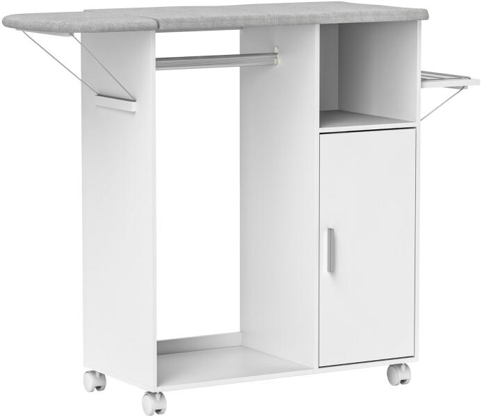 Homcom vasalódeszka-szekrény - 3 polc, szivacsos felső rész és mosási útmutató Vasalódeszka
